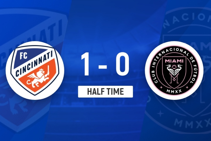 上半场比赛结束,迈阿密国际0-1辛辛那提。